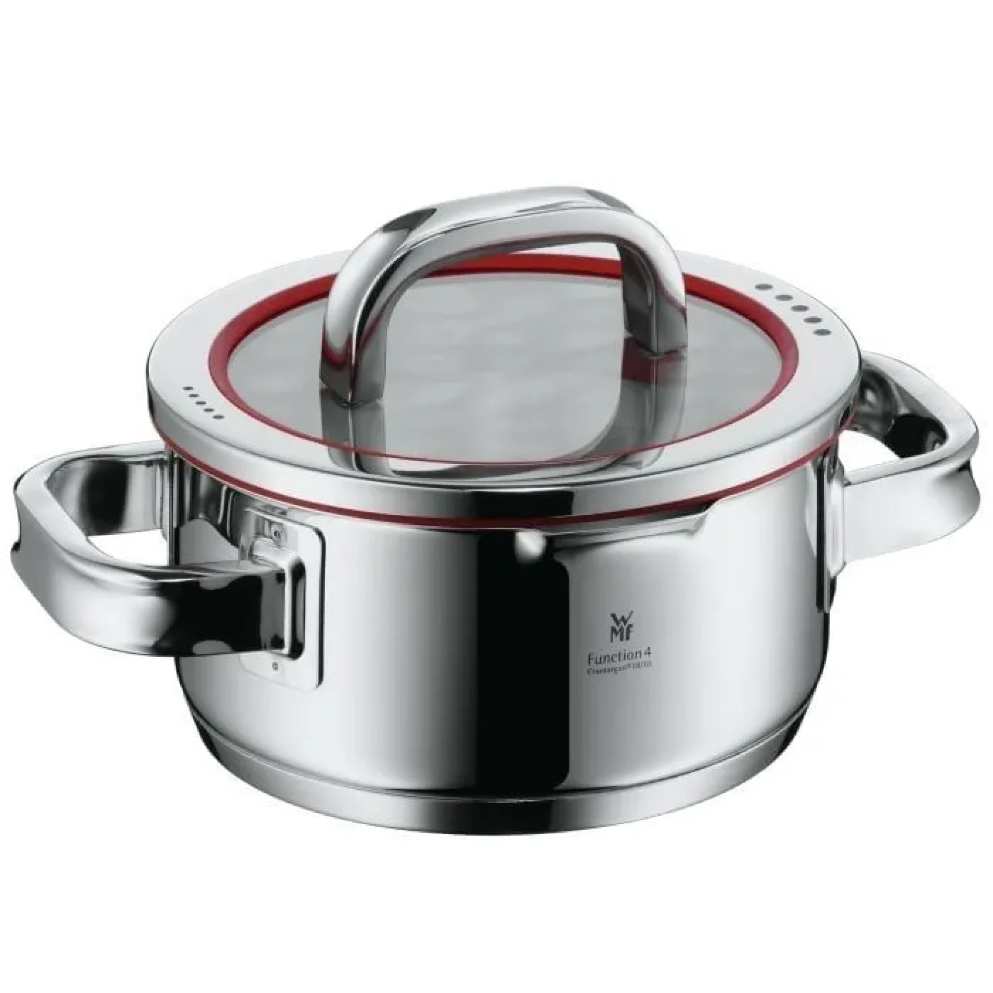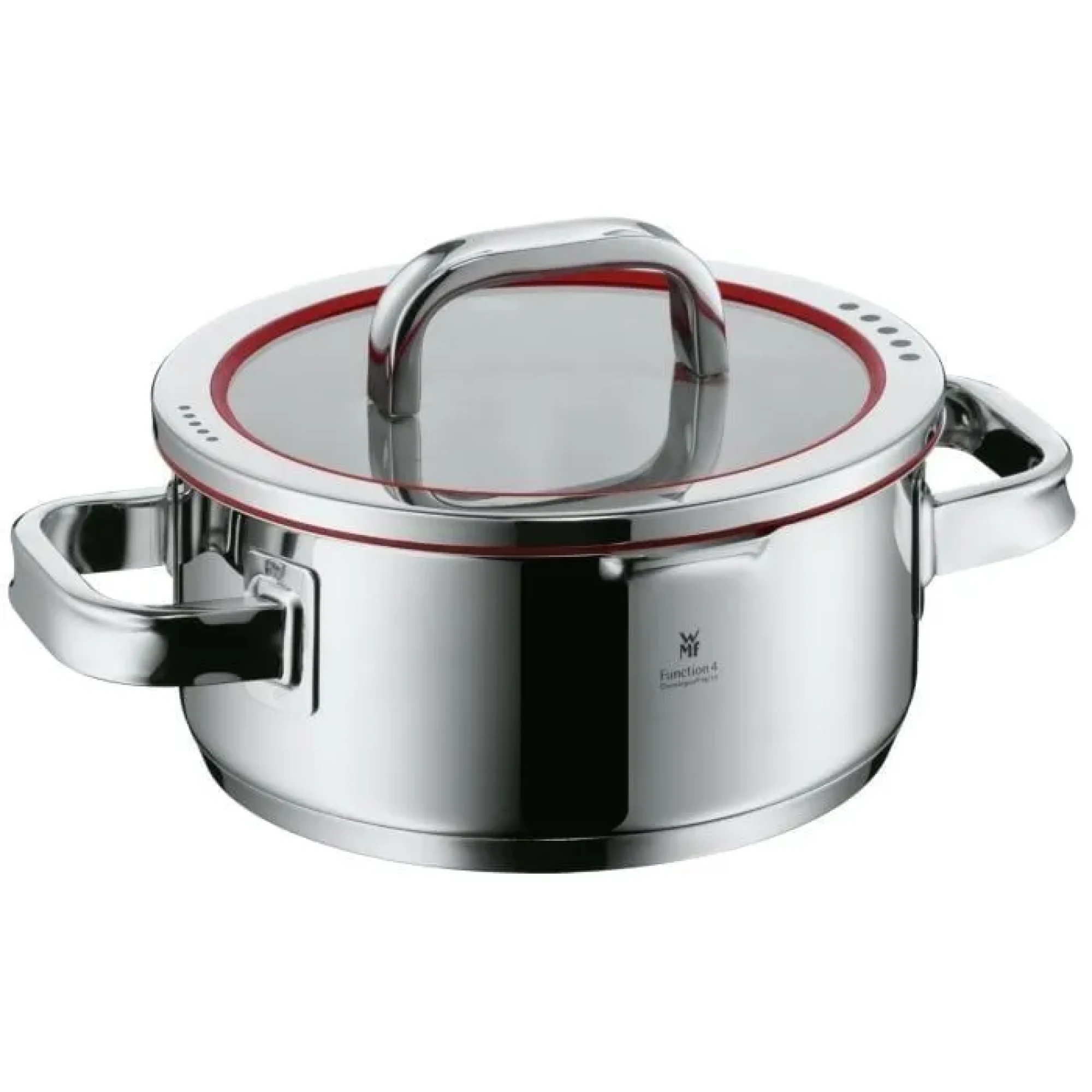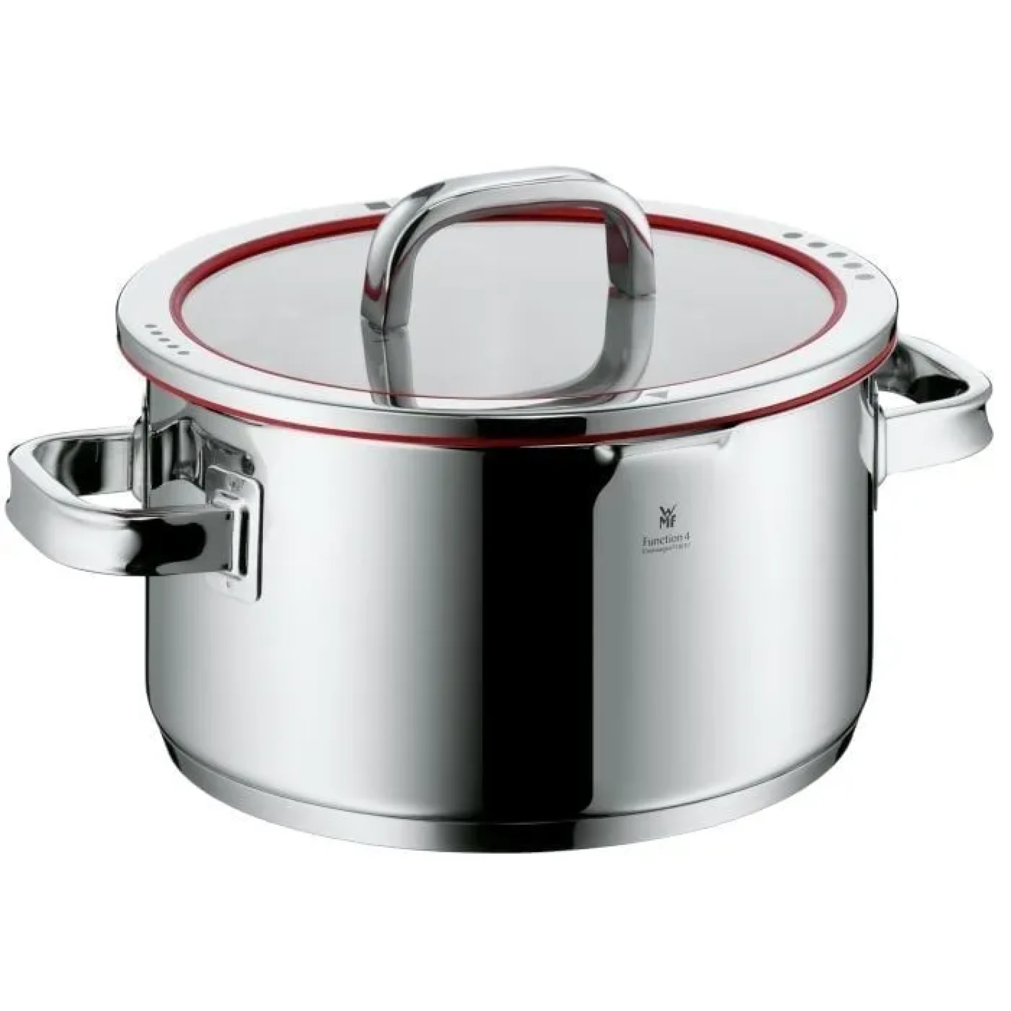 Великолепный дизайн, инновационные функции, первоклассный материал Cromargan, специальное дно TransTherm – все эти качества объединились в серии кухонных кастрюль Function 4 от компании WMF. Такая посуда станет незаменимой для тех, кто любит готовить и при этом ценит практичность и высокое качество Легко чистить, можно использовать в духовке, нейтральный по вкусу и кислотостойкий. Стекло. Силикон. 4 функции слива жидкости, регулируемые положением крышки; технология Cool+: крышка и ручки дольше остаются холодными Термостойкое силиконовое кольцо для максимального уплотнения Многослойное энергосберегающее дно TransTherm Изготовлено из высококачественной нержавеющей стали Cromargan 18/10, материал устойчив к кислотам и ржавчине, не имеет запаха и вкуса Подходит для всех видов плит, включая индукционные; Можно мыть в посудомоечной машине; Подходит для духовки: термостойкость без крышки до 250 °C и до 180 °C с крышкой дизайн: NOA Design.