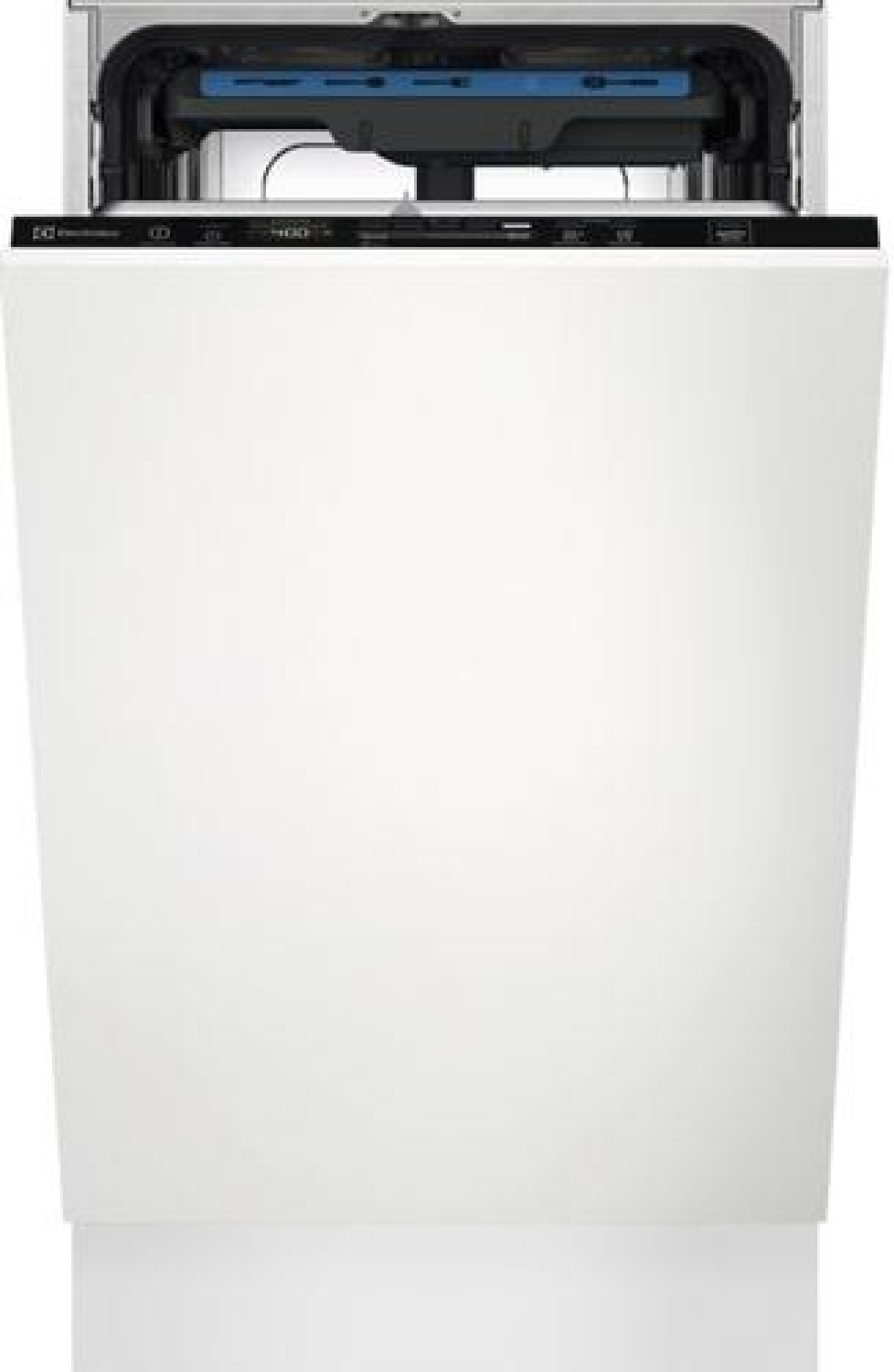 Electrolux EEM43211L узкая посудомоечная машина — меньше 45 см в ширину, — и отлично встанет даже в тесную кухню, где каждый сантиметр на счету. Высоту можно немного подстроить под столешницу, так что с монтажом не будет хлопот. Снаружи — ничего лишнего: просто гладкая панель, которая не цепляет взгляд, но спокойно смотрится рядом с любой мебелью.