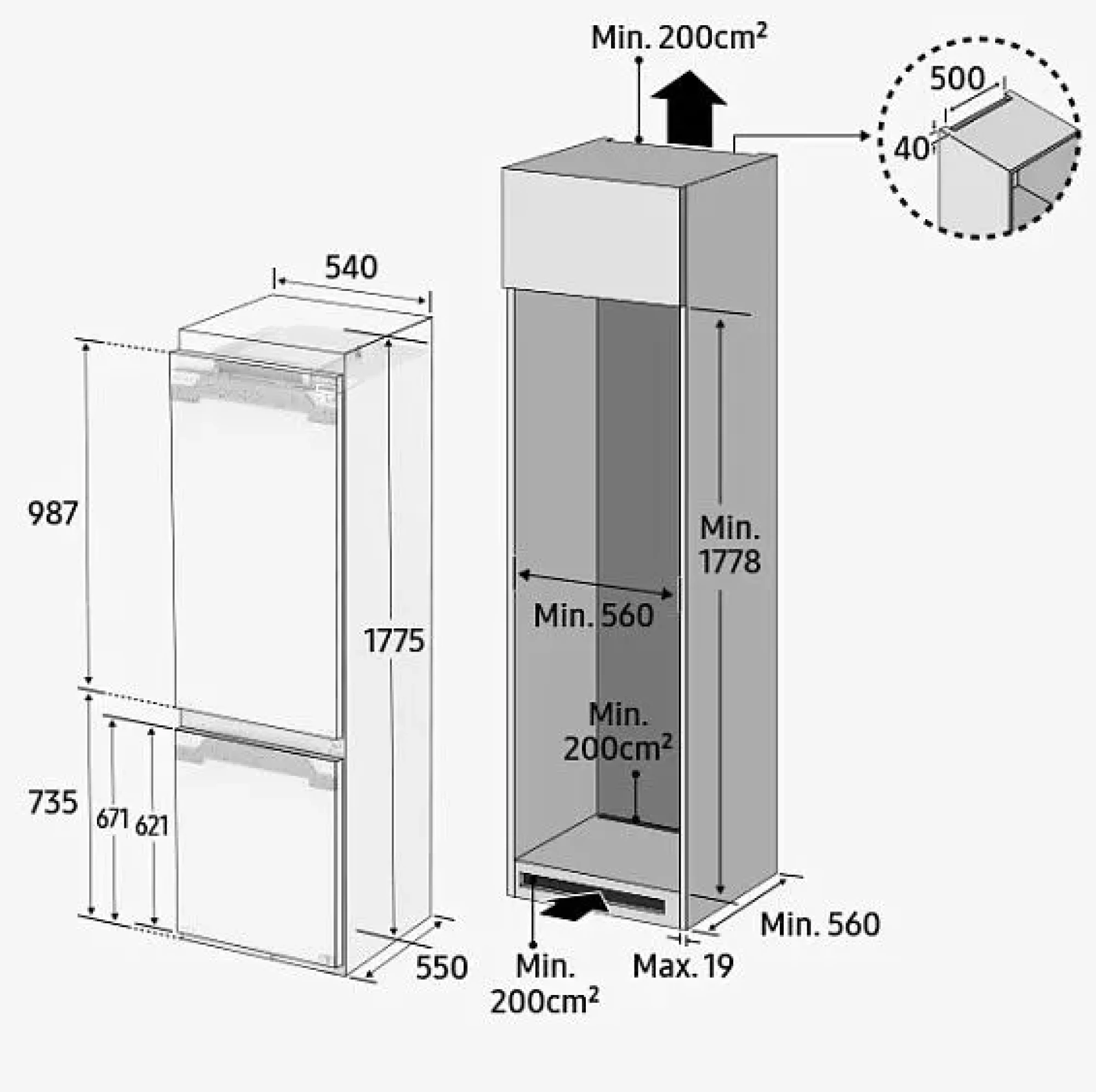 Встраиваемый холодильник Samsung BRB70F26CES0EO, No Frost